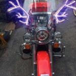 Next, the Santa sleigh aka 2000 Harley Roadking got a face lift with a bright Imron Viper red paint job. The 3-D printed reindeer horns had issues with stress cracking due to the vibrations of the Harley.