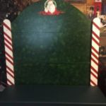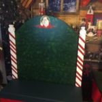 I made up a special Santa crest for the top center of the chair. Then we added candy canes to the sides. If you look on top of the candy canes, we added a snowman for the top of each candy cane