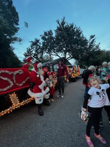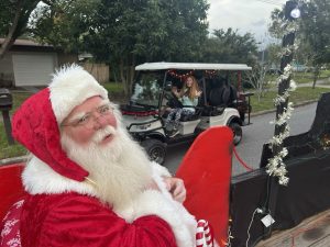 Santa is in the official Belle Isle sleigh with his team of elves handing out stuffed toys as we drive through the neighborhoods.