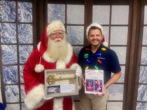 The edgewood District welcomes Santa as he turns Edgewood CIty into a Santa north Pole workshop.