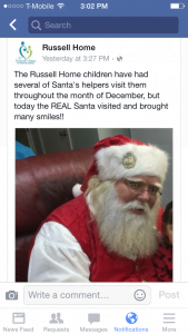In a special tradition set by Jay Herrington and his honorary Santa’s of Fish on Fire, Santa is making his list for a special yearly appearance at The Russell Home