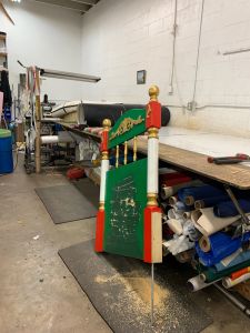 The final touches were applied to a custom colorful Santa in his magical sleigh and reindeer.