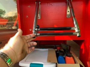 I wanted to improve on the tote handle so I used a small fold out and expandable marine boat ladder making it easier to tote behind me for the appearances since one side was already on wheels.