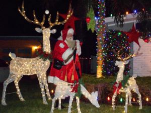 The Santa sleigh is equipped with LED lights on the reindeer horns, Christmas tree & candy canes. The remote control has a on-off, flash mode and fade mode. I waived good by and the sleigh waived by by going into the fade mode as I left. The squeals of joy that came from the young lad & sister and some of the crowd laughter were a special treasure as I departed.