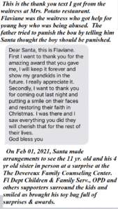 After the appearance, I was surprised to receive a special award by text & thank you from these two ladies for the Santa appearance and gifts.