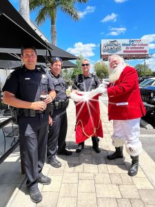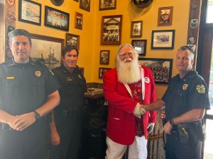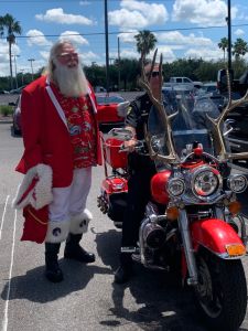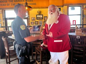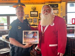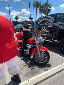 Arrangements were made to give Lt. Dillon a special Santa magic key in a shadow box and a Santa spirit award on Friday the 13th. Yep, May 13, 2022 I loaded up my Santa toy bag and met Lt Dillon at Mission Barbeque on S. 436 in Orlando.