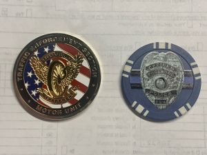 Lt Dillon gave me a special OPD coin from the traffic enforcement section Motor unit. When I got home I looked hard the coin and the motorcycle wheel with the wings through it. It was very special to me as I am in the Shriners motorcycle unit and this logo is often used on our uniforms. I was so honored that added to a special coin that was given to me from Edgewood PD.