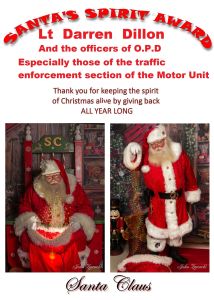 The coincidence or unique part here is that Lt. Dillon had a 1999 Harley Road king while my Santa sleigh is a 2000 Road King. Plus I had a bad mc accident on my Harley several years ago by a negligent driver. Oddly enough. Lt Dillon was struck by a driver at a left turn intersection. Both of us kept our love for motorcycles and used them in our transportation to watch over others.